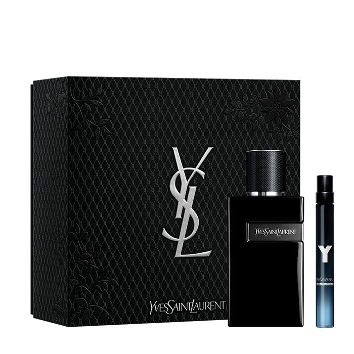 GIFT THE YSL WAY this holiday season with the bold and sensual Y Le Parfum gift set. Perfect for treating yourself or someone special, this set includes a full-sized bottle and a convenient travel spray, making it ideal for both home and on-the-go use.